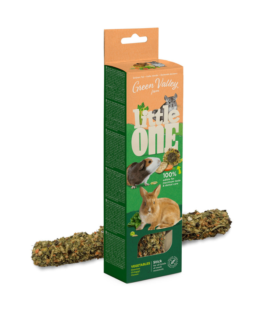 Little One Green Valley Vegetable Stick é um snack com sementes e vegetais, sem cereais, para roedores. Uma barra que, além de deliciosa, favorece a saúde dos dentes do seu pequeno amiguinho! Por não ter cereais, é um snack de fácil digestão, ideal para todos os roedores, inclusive os mais sensíveis.