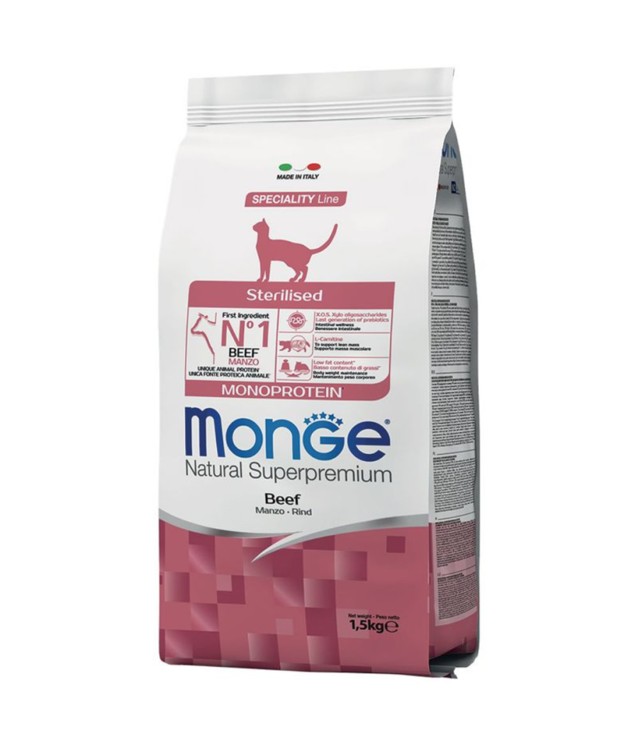 Monge Monoprotein Sterilised é um alimento completo para gatos.
