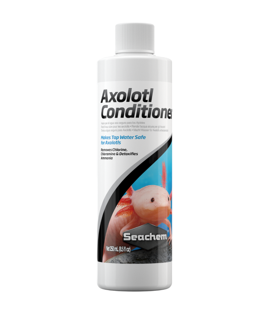 Seachem Axolotl Conditioner™ é um condicionador concentrado para água de aquário que torna a água da torneira segura para os axolotes, removendo o cloro, a cloramina e desintoxicando o amoníaco.