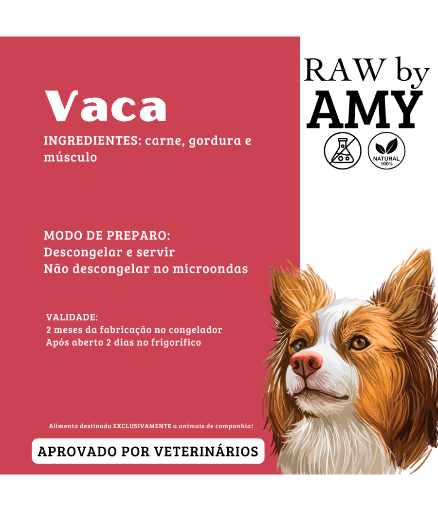 Da gama Amy & Mimi, o produto RAW by Amy – Vaca oferece uma alternativa nutritiva, simples e eficaz para cães e gatos que seguem uma dieta crua. Composta exclusivamente por carne de vaca, gordura e músculo, esta receita fornece proteínas de alta qualidade e um teor energético adequado para animais ativos ou em fase de crescimento.