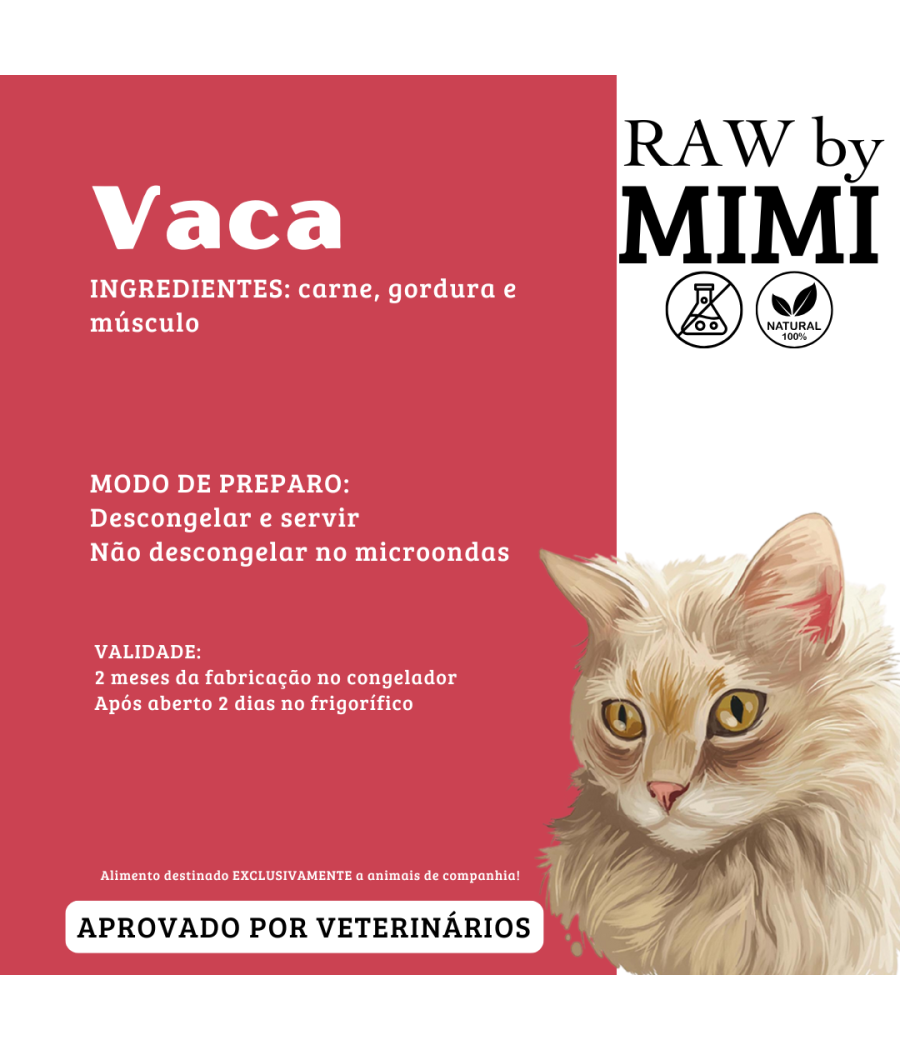 Da gama Amy & Mimi, o produto RAW by Amy – Vaca oferece uma alternativa nutritiva, simples e eficaz para cães e gatos que seguem uma dieta crua. Composta exclusivamente por carne de vaca, gordura e músculo, esta receita fornece proteínas de alta qualidade e um teor energético adequado para animais ativos ou em fase de crescimento.