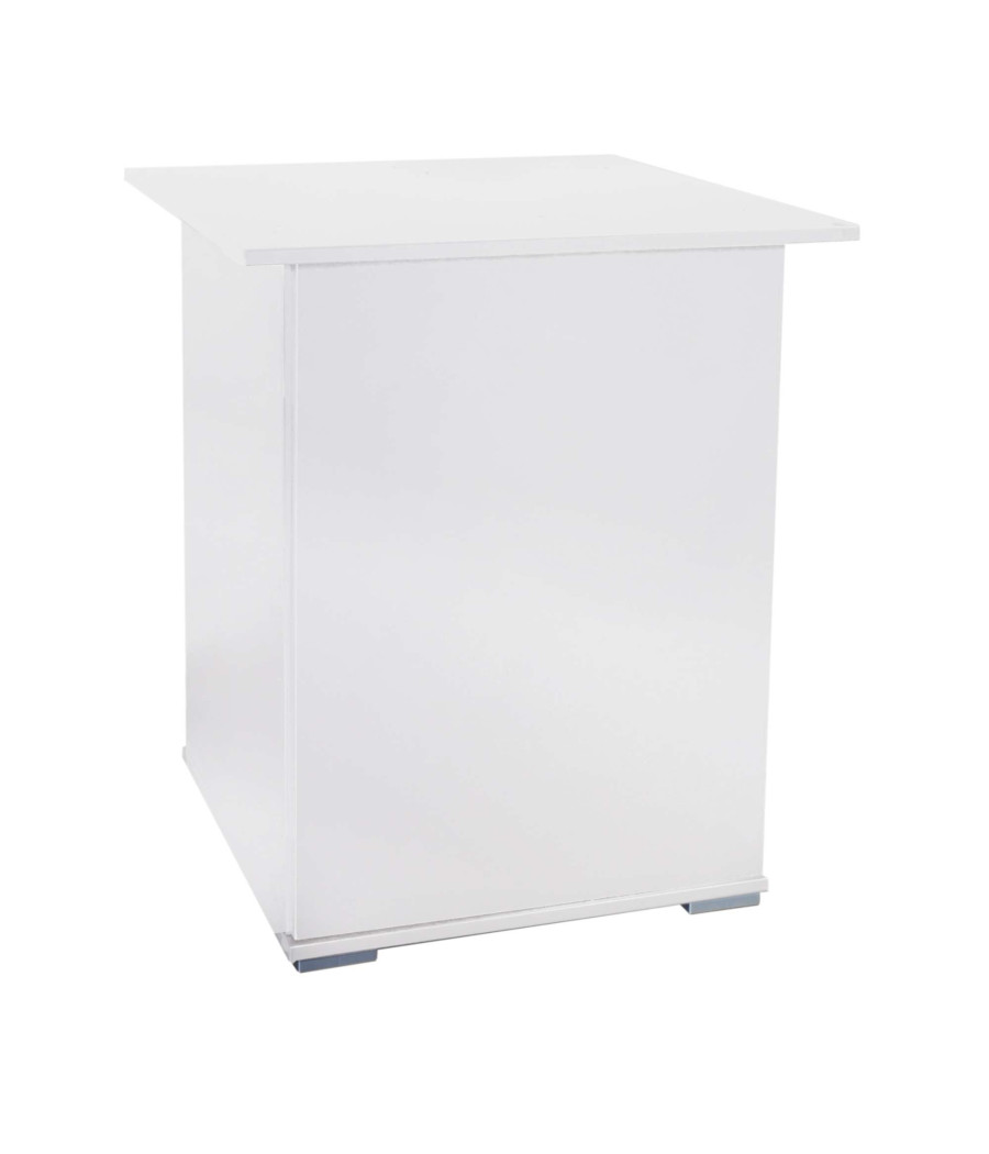 Móvel robusto e elegante, com acabamento branco, ideal para aquários em formato cubo de até 190 litros.