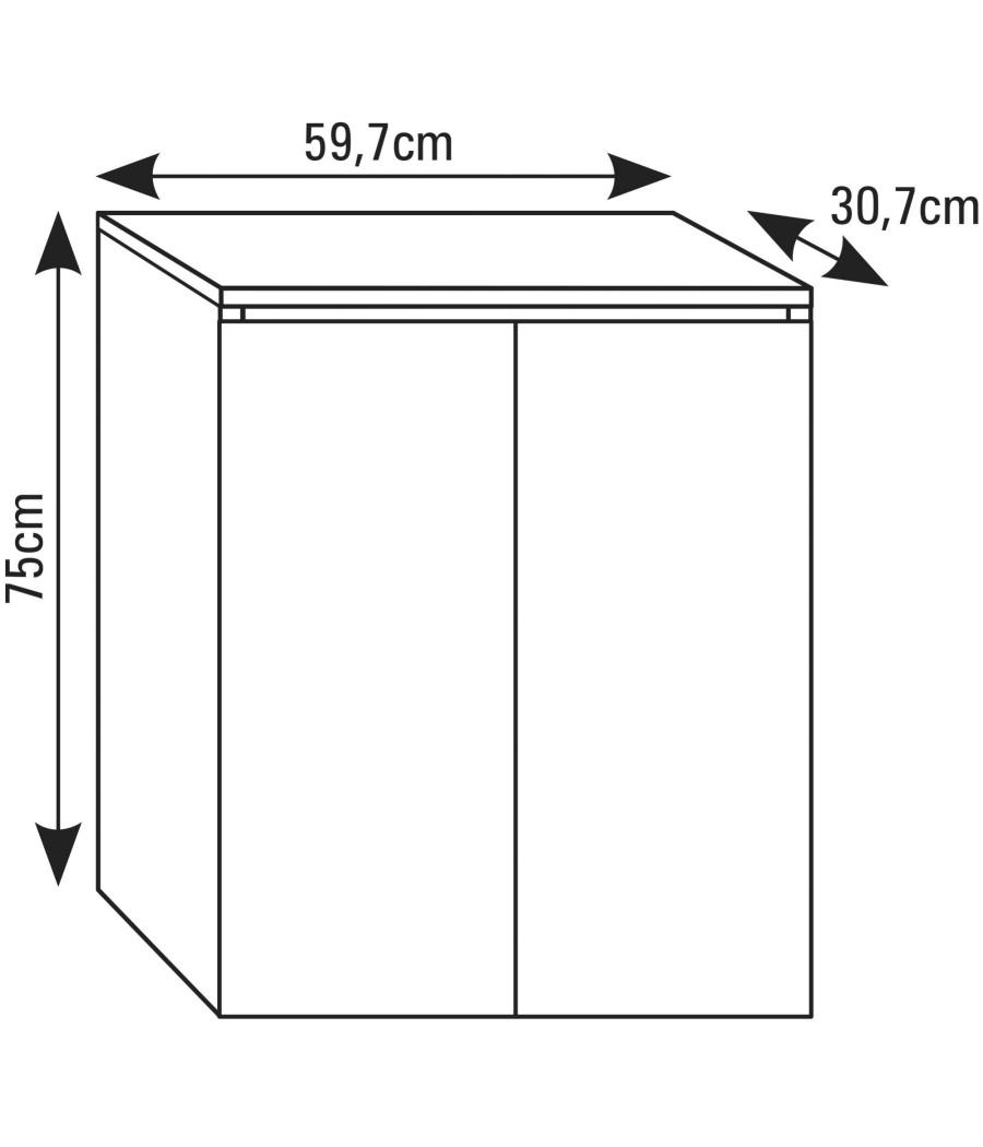 Dimensões: 59,7 cm (largura) x 30,7 cm (profundidade) x 75 cm (altura)
