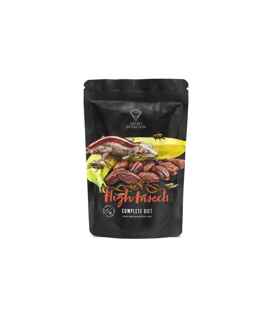 Gecko Nutrition High Insects foi especialmente formulado para atender às necessidades de lagartixas-de-crista, mas também é ideal para outras espécies de répteis frugívoros.