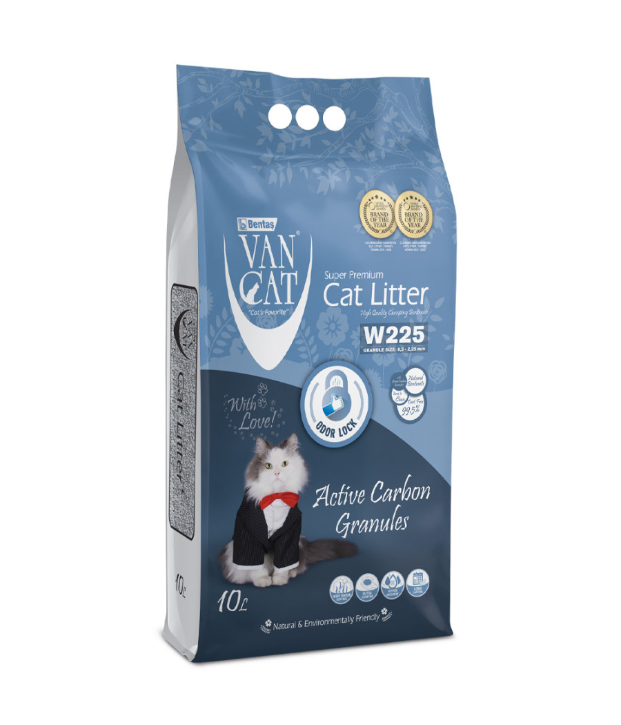 Esta areia para gatos super premium pertence à série W225, que tem grânulos com um intervalo de tamanhos de 0,6-2,25 mm, com uma capacidade de absorção entre 280% e 300%. Este é o tipo de areia mais vendido no mercado. A aglomeração forma uma espécie de bola de neve.