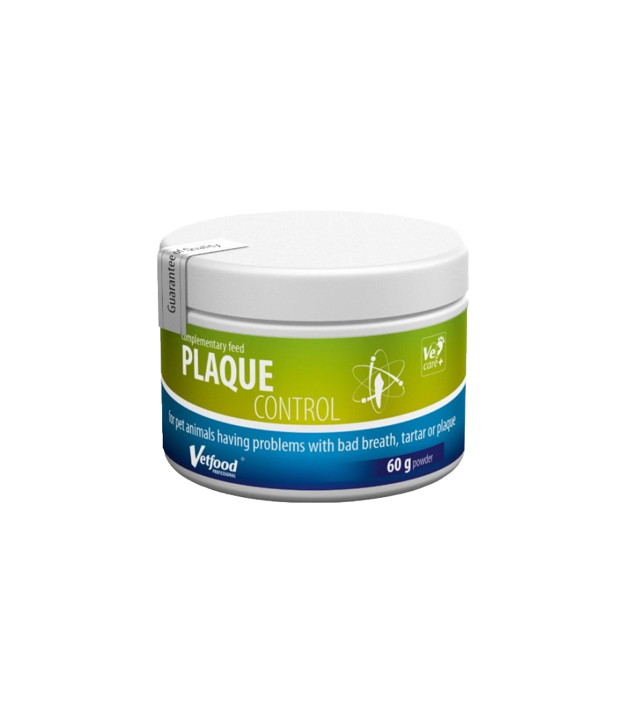 Plaque Control contém algas castanhas naturais (Ascophyllum nodosum) que são benéficas na saúde dos animais devido às suas vitaminas, minerais, aminoácidos essenciais e ácidos gordos não saturados. O extrato de chá verde complementa a composição do produto.
