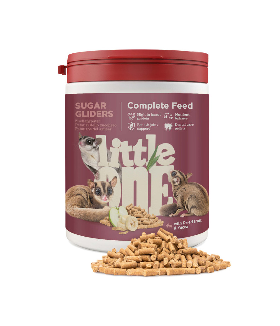 Alimento completo premium Little One para petauros-do-açúcar, com proteínas naturais e vitaminas essenciais para a saúde óssea e articular.