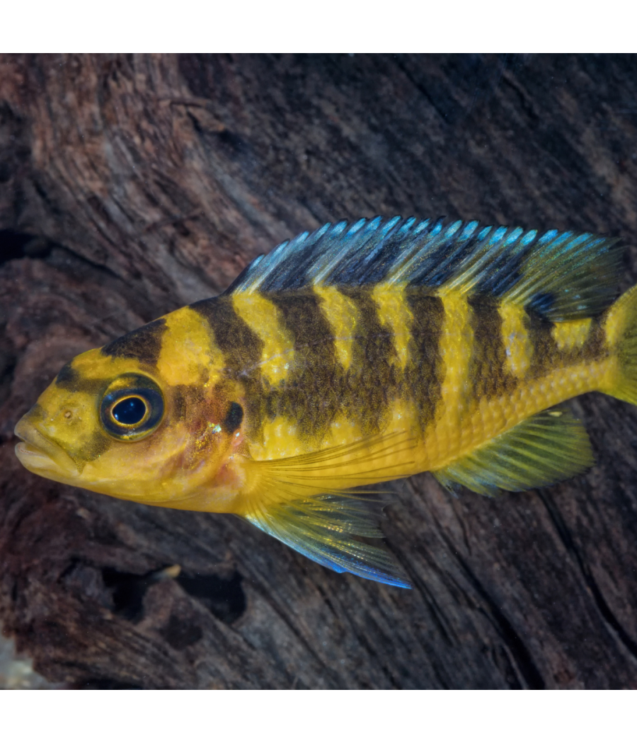 O Pseudotropheus crabro é um ciclídeo africano endêmico do Lago Malawi, pertencente ao grupo dos Mbuna. É popularmente conhecido como “Mbuna Abelha” devido ao seu padrão de cores amarelo e preto, que lembra uma abelha. Um dos aspetos mais interessantes desta espécie é a sua mudança de coloração ao longo do crescimento, passando por diferentes fases desde juvenil até adulto, o que a torna particularmente fascinante no aquarismo.
