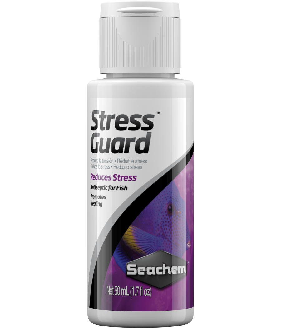 StressGuard™ reduzirá o stress e a toxicidade da amónia sempre que manusear ou transportar peixes.