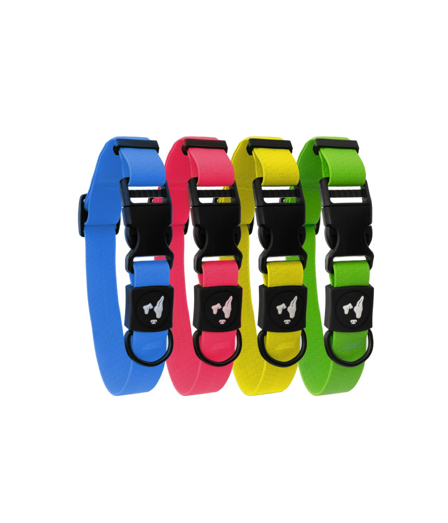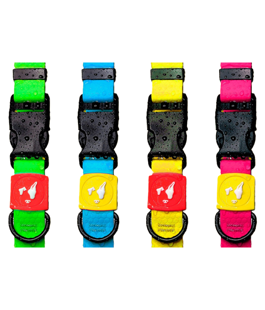 Além de ser à prova d'água, a coleira foi projetada para resistir ao acúmulo de odores e bactérias, que podem causar um cheiro desagradável e evitar irritações na região do pescoço. Estas coleiras são confecionadas em tela revestida de PVC, ideal também para cães de pelo longo, graças ao seu material macio e não poroso, que evita que o pelo fique entre os fios, evitando também nós no pelo.