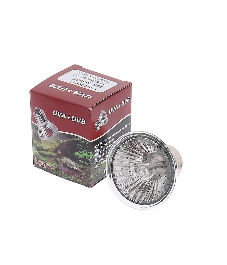Esta lâmpada fornece raios UVA UVB e calor, indicado para répteis diurnos, ajudando a criar um paraíso réptil no habitat dos répteis.