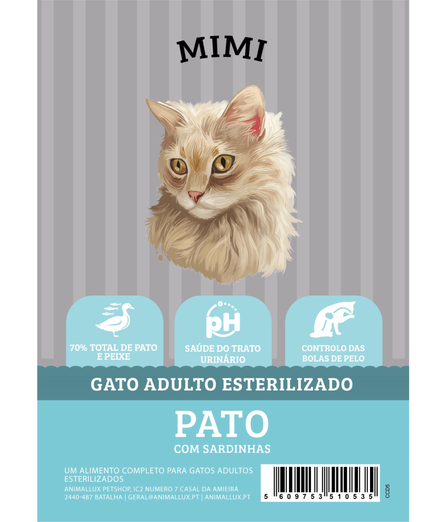 A gama Mimi foi desenvolvida pela Animallux Petshop para fornecer uma seleção de receitas com elevado teor em proteínas e conteúdo animal que são irresistíveis para os gatos. A gama foi formulada para oferecer uma variedade das melhores fontes de proteína animal preparadas frescas com ingredientes funcionais adicionados para ajudar a cuidar da saúde do seu gato.