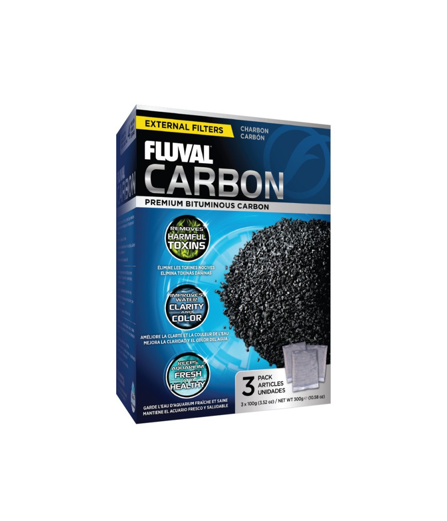 O carvão ativado Fluval faz parte da oferta de meios filtrantes químicos da Fluval para filtros externos.