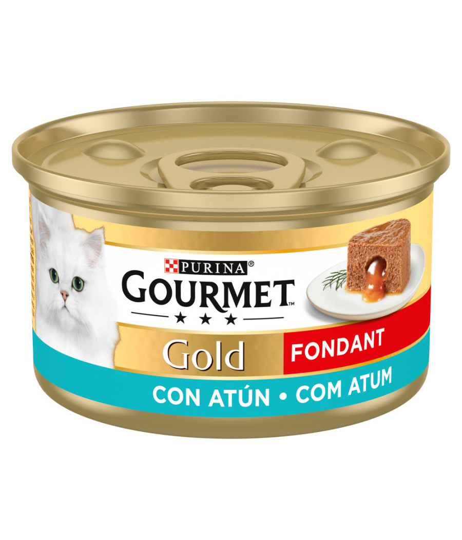 GOURMET Gold Fondant é uma mousse suave e irresistível de requintados sabores, com um surpreendente recheio derretido no interior. O seu gato começará por experimentar uma suave e delicada mousse e depois irá descobrir um inesperado recheio, com um molho suculento que o irá deliciar.