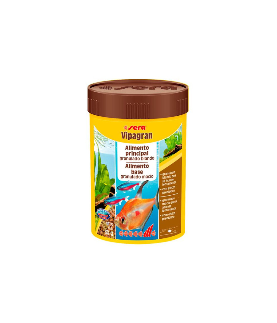 Sera Vipagran Nature é o alimento base, composto por granulado macio, cuidadosamente processado, sem corantes e conservantes, indicado para todos os peixes que comem na zona média da água.