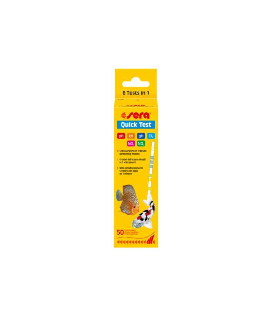 Controlo de rotina ou prova de segurança: com o Quick Test, sera oferece a ótima possibilidade de verificar os parâmetros mais importantes da água (valor do pH, dureza de carbonatos, dureza total, nitrato, nitrito e cloro), rapidamente e sem problemas, só com uma tira reativa.
