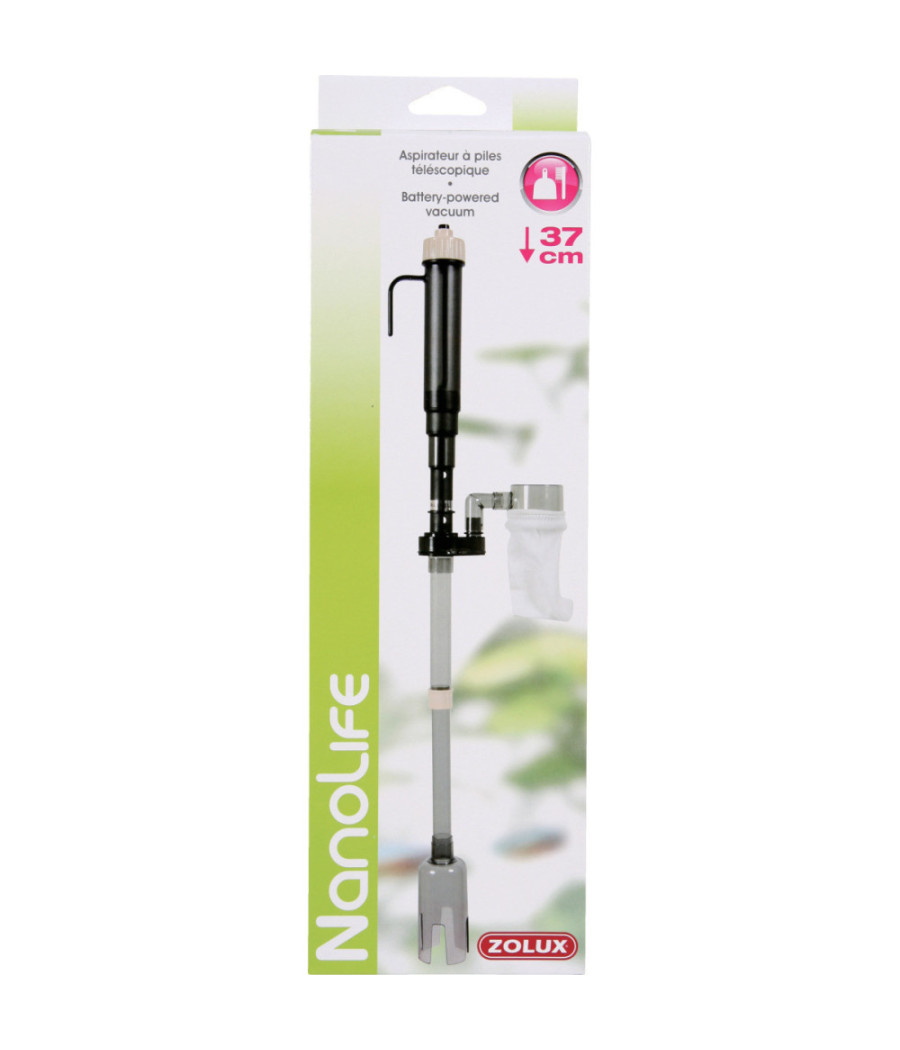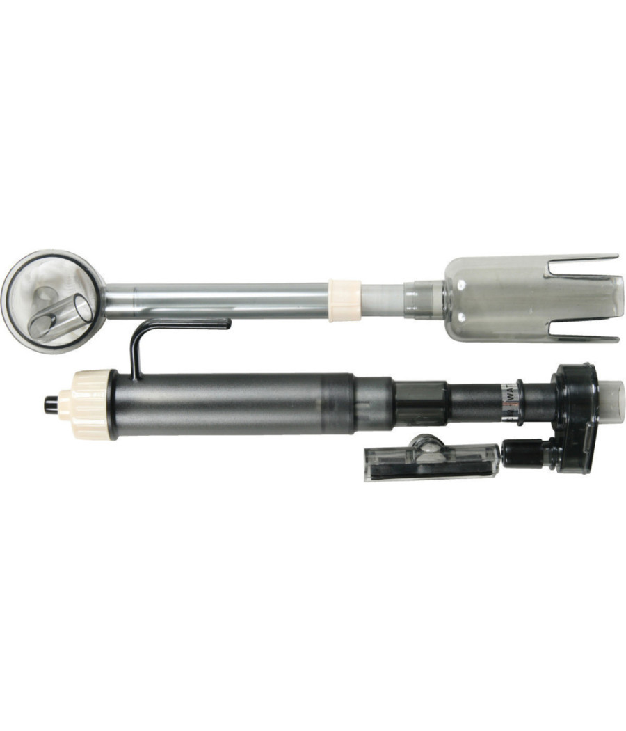 O aspirador de pilhas telescópico permite-lhe remover depósitos do fundo do seu aquário.