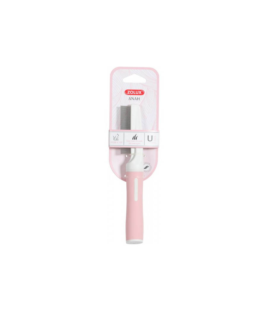Os dentes arredondados na ponta do pente são suaves para a pele do gato.