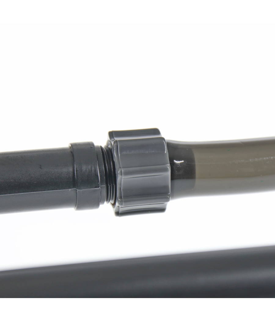 O bloco de ligação da mangueira patenteado com válvula de segurança impede a saída de água ao desacoplar o filtro.