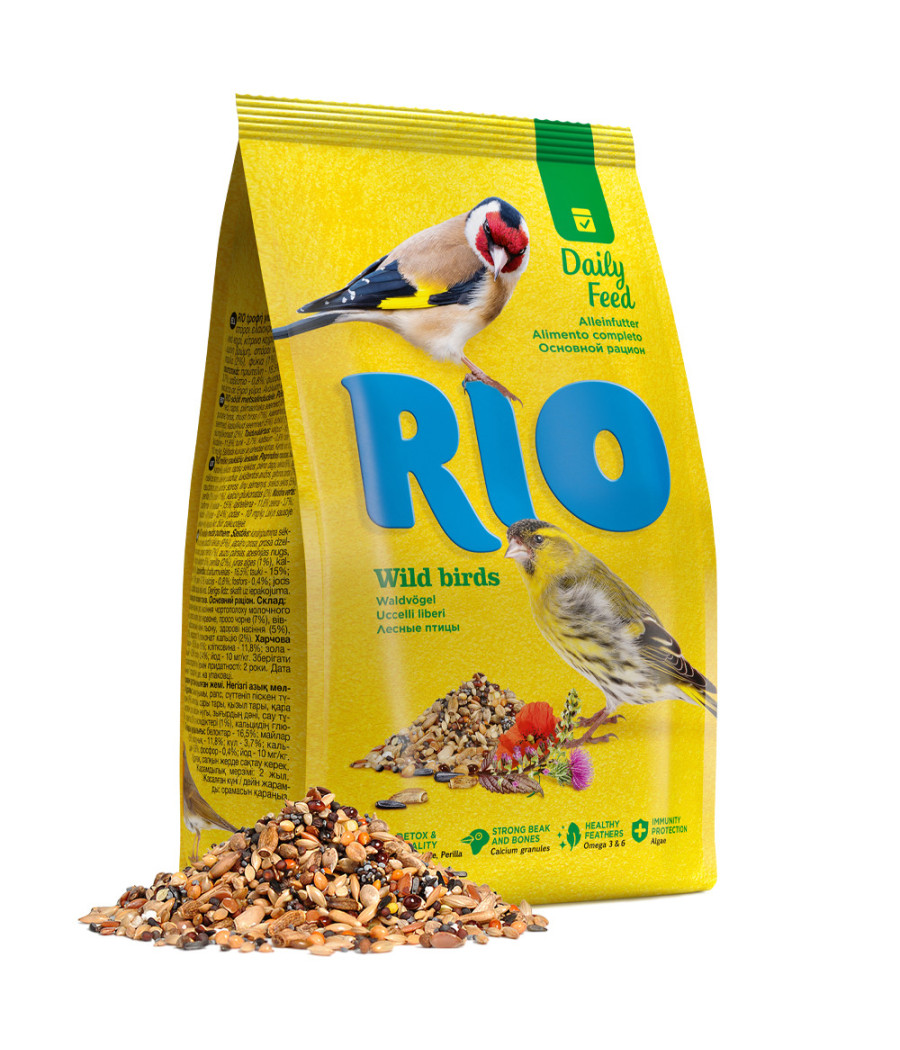 RIO Wild birds é uma mistura de sementes muito apreciadas por pintassilgos e outros pássaros silvestres. Com uma grande variedade de ingredientes, para garantir que as aves obtêm todos os nutrientes necessários a uma boa saúde geral.