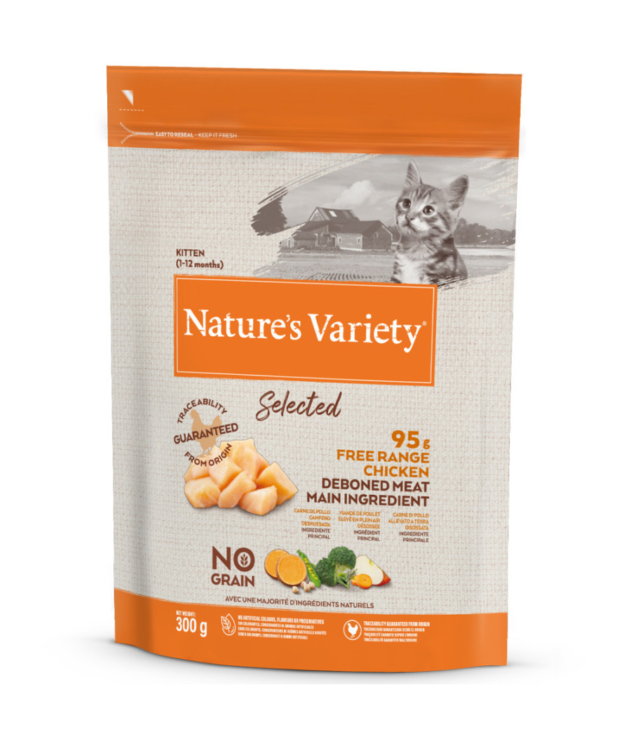 Alimento completo e equilibrado para gatinhos, sem cereais.