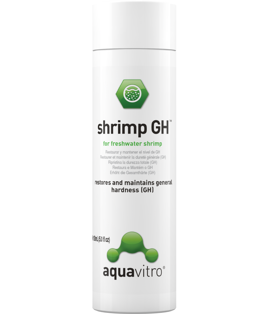 aquavitro® Shrimp GH™ adiciona um espectro completo de minerais ao aquário de camarões.
