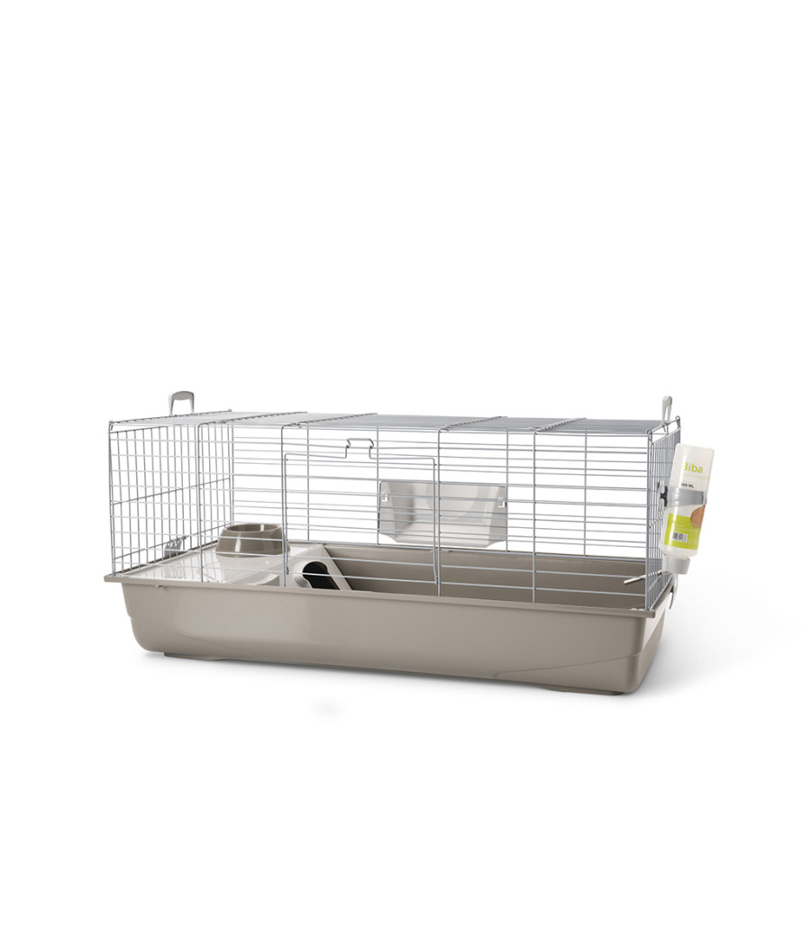 A gaiola vem com uma tigela de alimentação, uma garrafa para beber e um suporte para feno, deixando a nova casa do seu coelho anão pronta para ser habitada imediatamente.