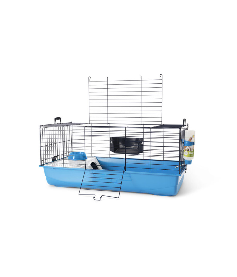 A gaiola vem com uma tigela de alimentação, uma garrafa para beber e um suporte para feno, deixando a nova casa do seu coelho anão pronta para ser habitada imediatamente.