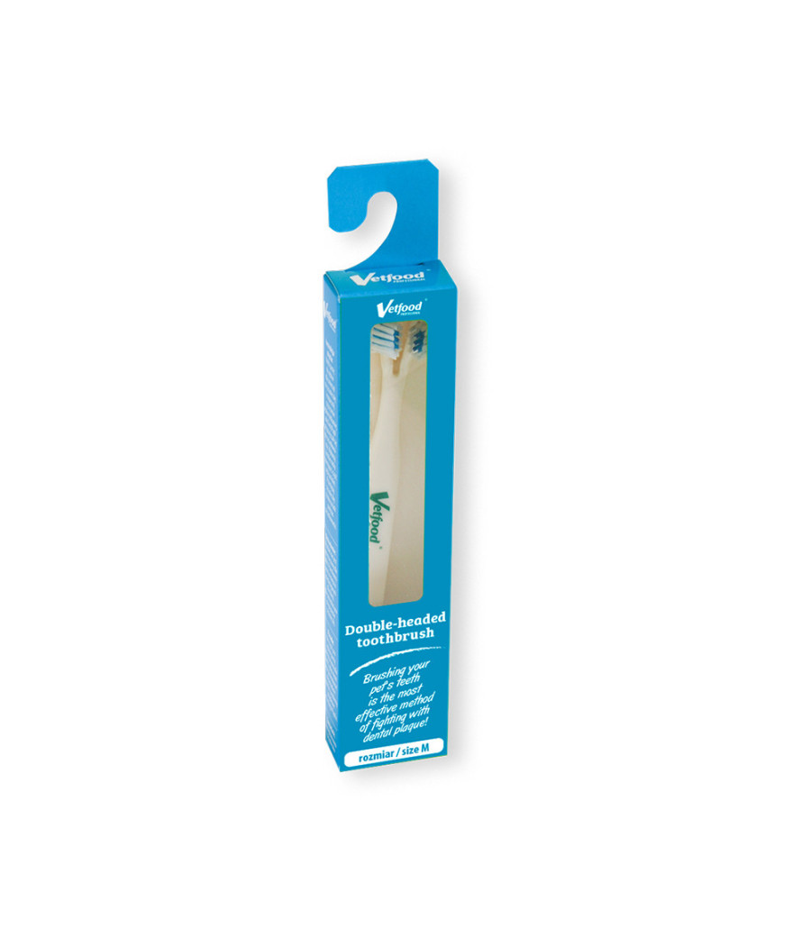 Escova de dentes Vetfood Professional, para cães e gatos, com cabeça dupla, de fácil manuseamento e agradáveis para os animais. Ajuda a manter uma boa higiene oral e as gengivas saudáveis, essencial para a boa saúde e bem-estar do seu melhor amigo.