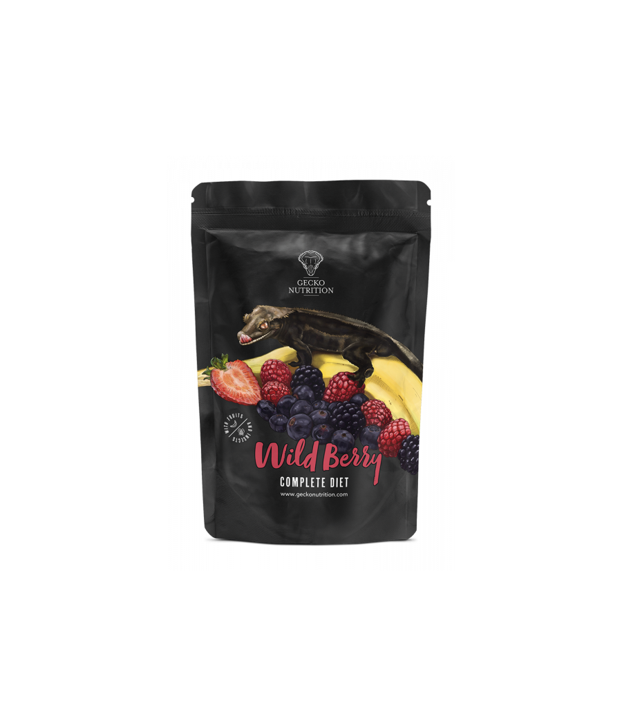 Os nossos geckos de crista sabem isso durante muito tempo: a banana é uma das guloseimas mais populares! A nossa mais recente variedade Wildberry, portanto, nada a desejar é deixado insatisfeito. Para além das bananas, a nova variedade contém tudo o que o universo de frutos silvestres oferece. Os morangos, as framboesas, as amoras e os mirtilos garantem que a taça de comida não se torna aborrecida. É claro que os alimentos contêm todos os minerais importantes e proporciona à sua lagartixa proteína suficiente devido ao elevado teor de insetos.